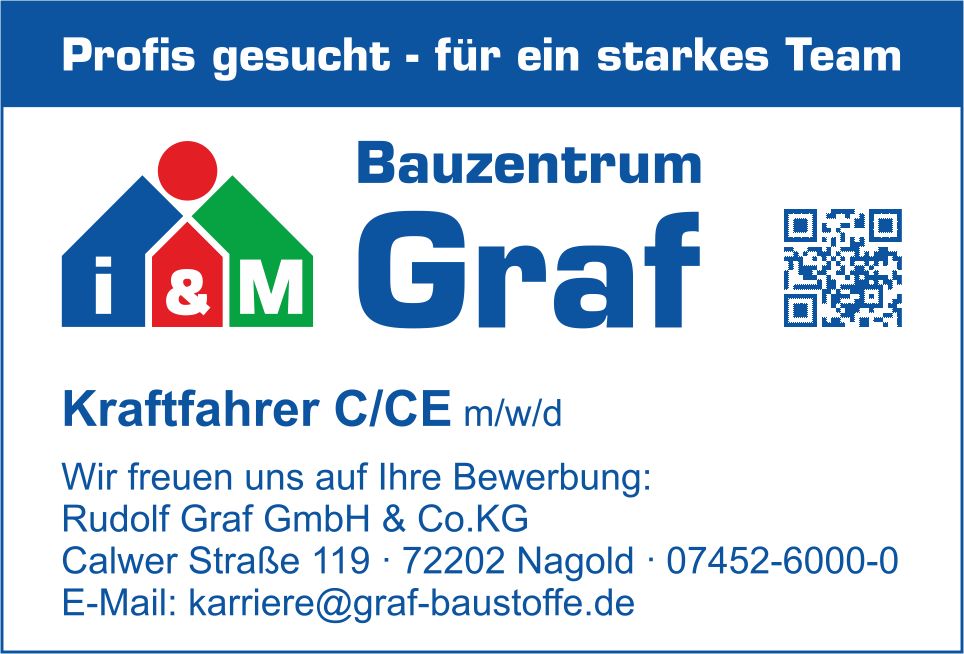 Gerne nehmen wir ihre aussagekräftige Initiativbewerbung per E-Mail an karriere (klammeraffe) graf-baustoffe.de oder postalisch entgegen. Bei Rückfragen künnen sie uns jederzeit telefonisch erreichen.