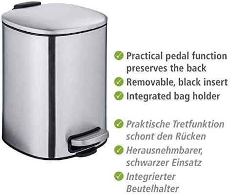 Der hochwertige Treteimer aus der Alassio-Serie von WENKO aus satiniertem Edelstahl überzeugt durch seine Qualität und sein mattes Finish.