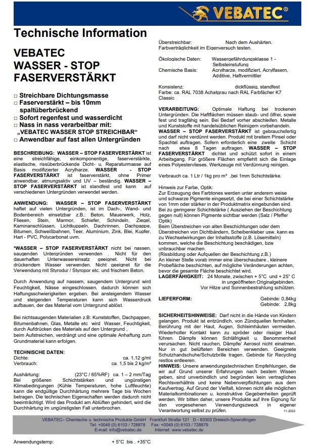 Shop » Detailansicht Vebatec WASSER-STOP - faserverstärkt