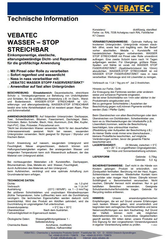 Shop » Detailansicht Vebatec WASSER-STOP - streichbar