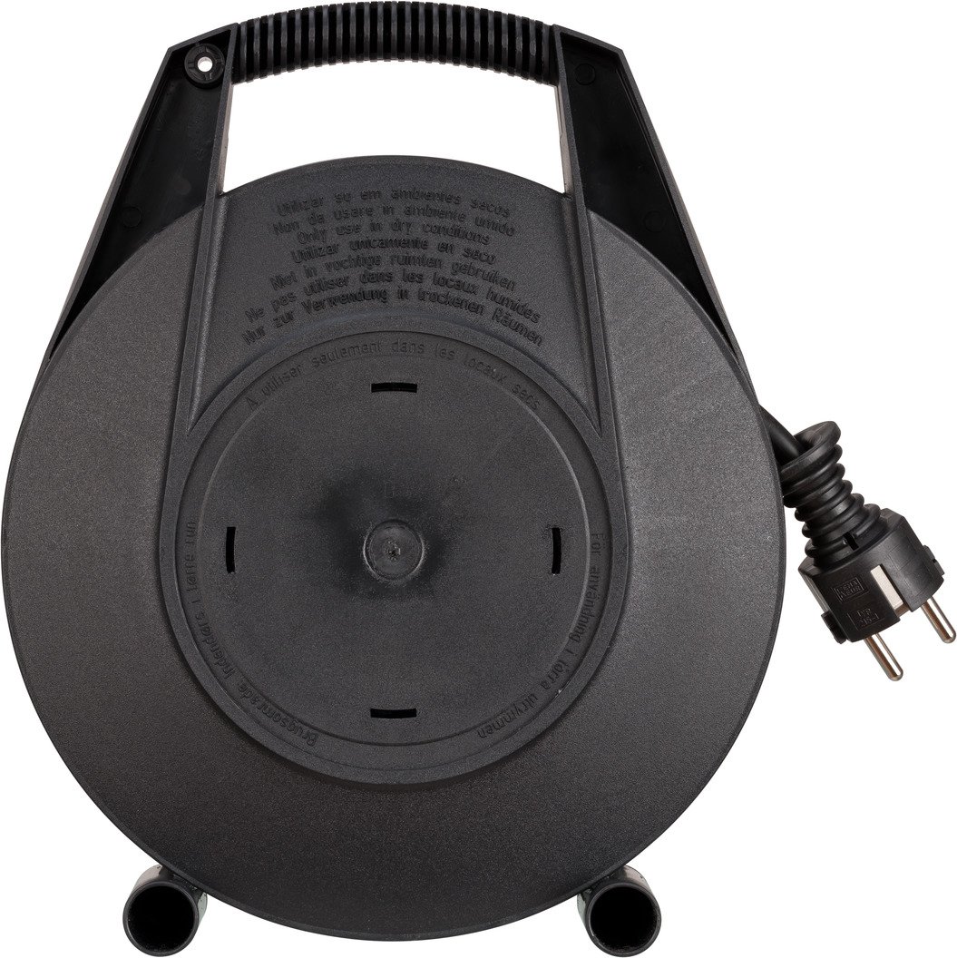 - Indoor-Kabeltrommel mit ergonomisch geformten Tragegriff und einer guten Standfestigkeit durch stabilen Doppelfuß