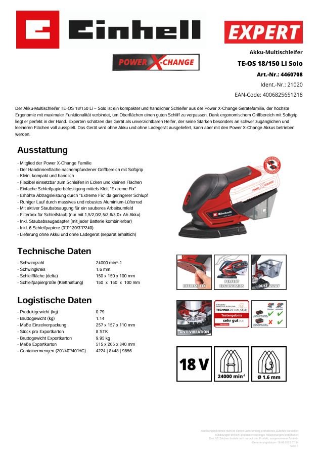 Shop » Detailansicht Akku Multischleifer TE-OS 18/150 Li Solo