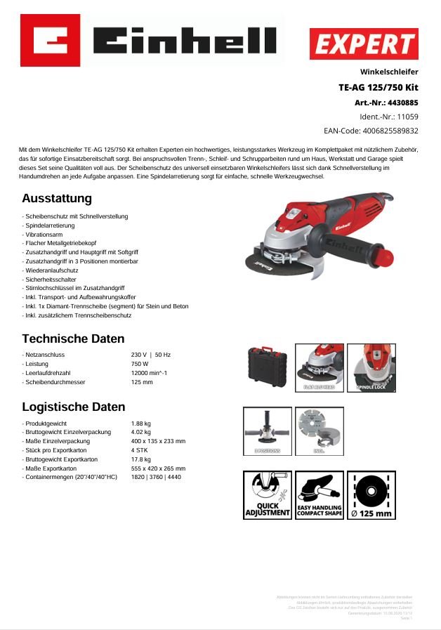 Kategorie: Maschinen/ Werkzeuge/ Schutzbekleidung/ Arbeitskleidung » Maschinen » EINHELL » Schleifgeräte