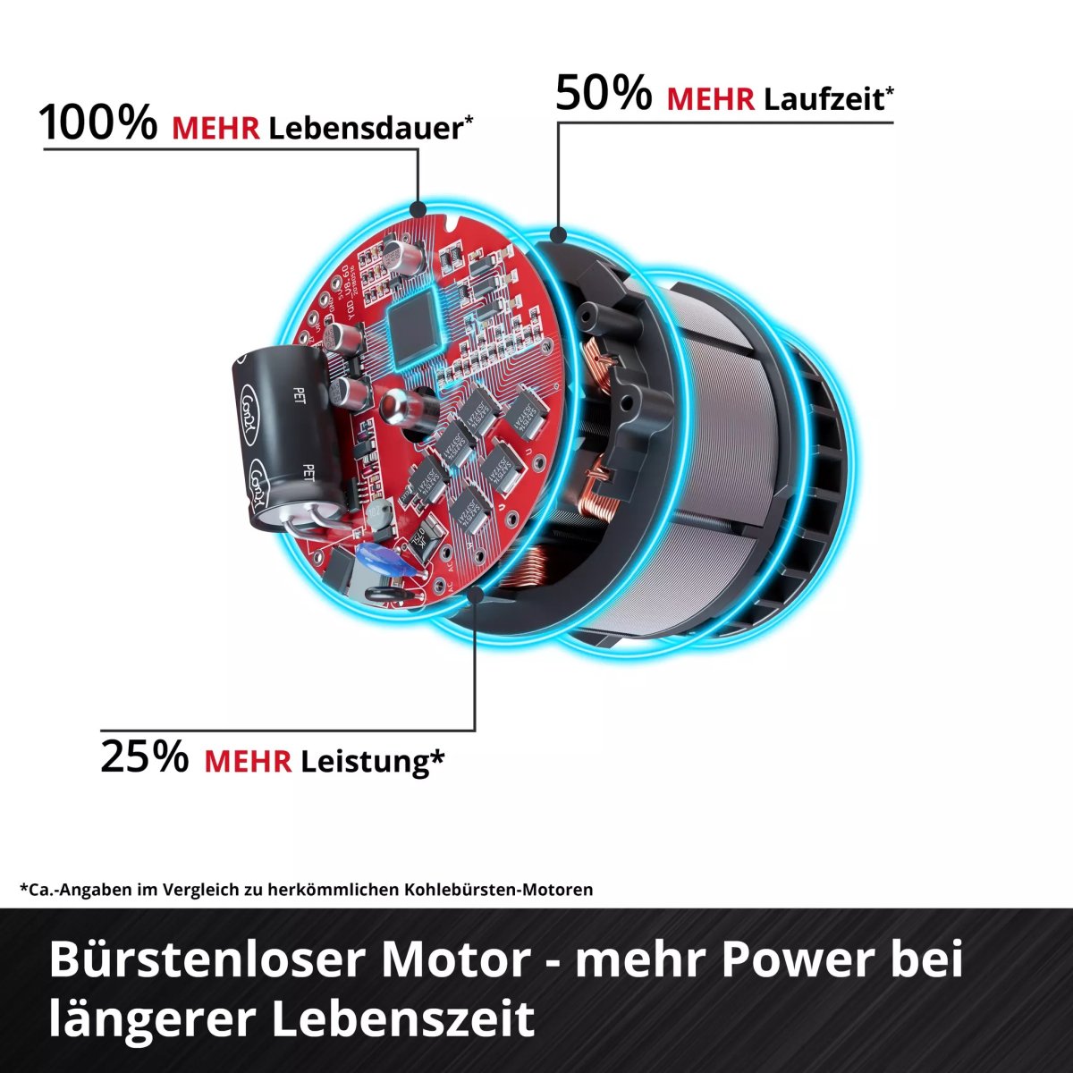 • Bürstenloser Motor – mehr Power und längere Laufzeit