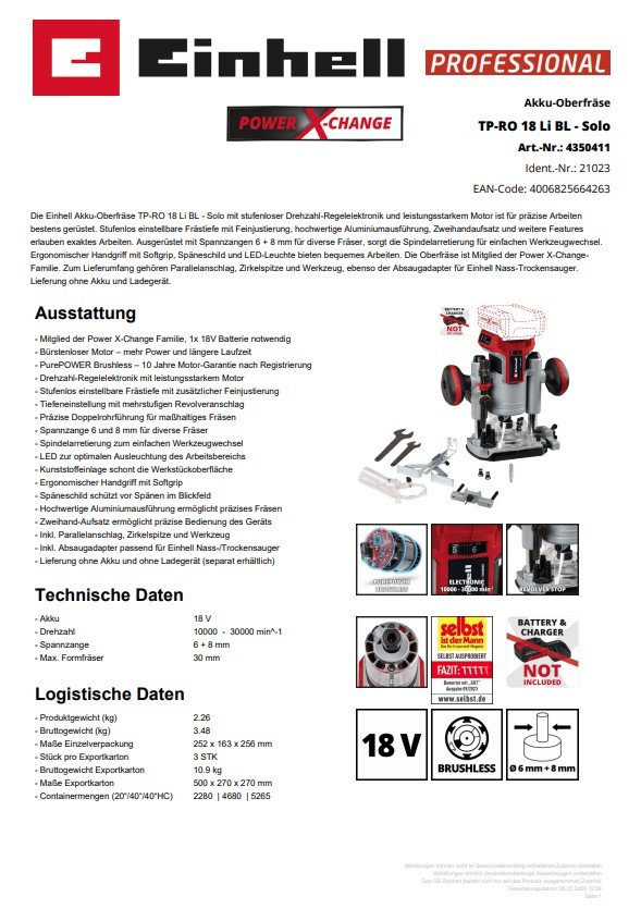 Kategorie: Maschinen/ Werkzeuge/ Schutzbekleidung/ Arbeitskleidung » Maschinen » EINHELL » Holzfräsen