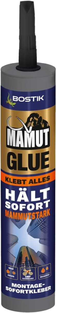 MAMUT GLUE ist ein qualitativ hochwertiger flexibler Montage-Sofortkleber mit extremster Anfangshaftung, extrem hoher Belastbarkeit und sehr hoher Endfestigkeit, basierend auf SMP Hybrid Technology, der unter Einwirkung von Feuchtigkeit zu einer dauerhaft elastischen Masse aushärtet. Hält sofort auch schwerste Materialien ohne mechanische Befestigung.